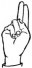 На ћирилици написано ПЕРИША БРЕСНОПОЉАЦ састоји се из 17 слова [?]. Исписано ћириличном једноручном азбуком за глувонеме: